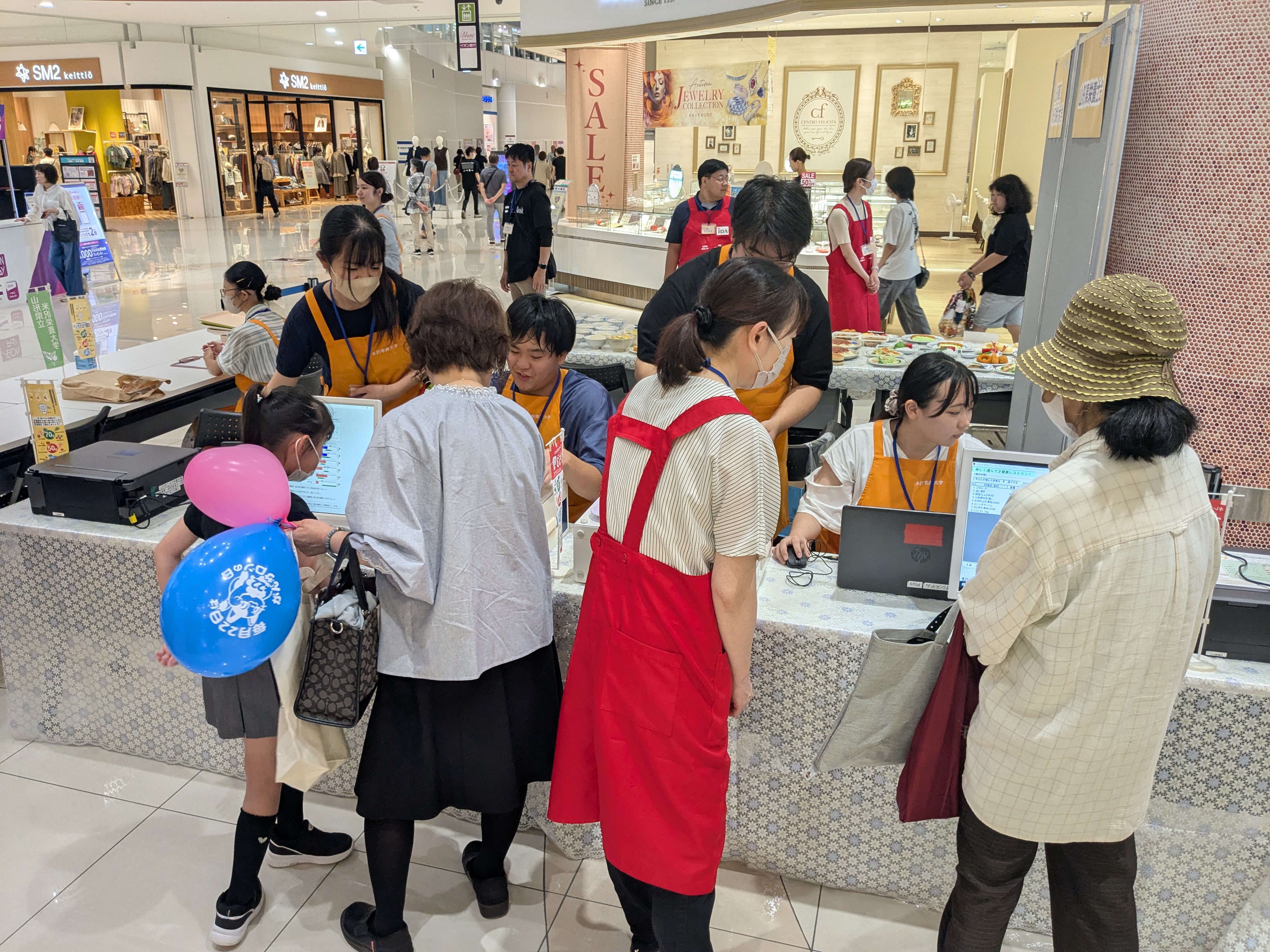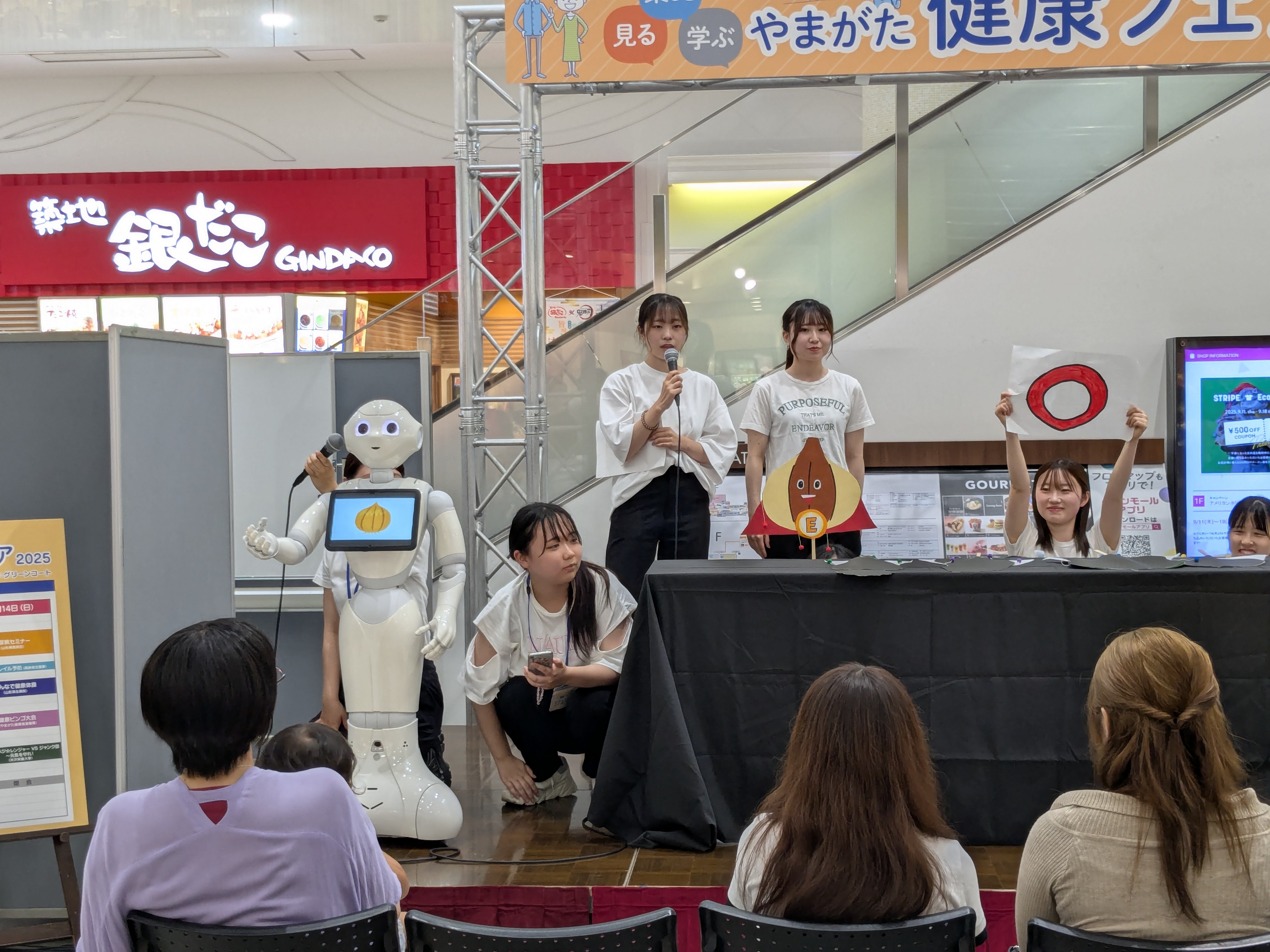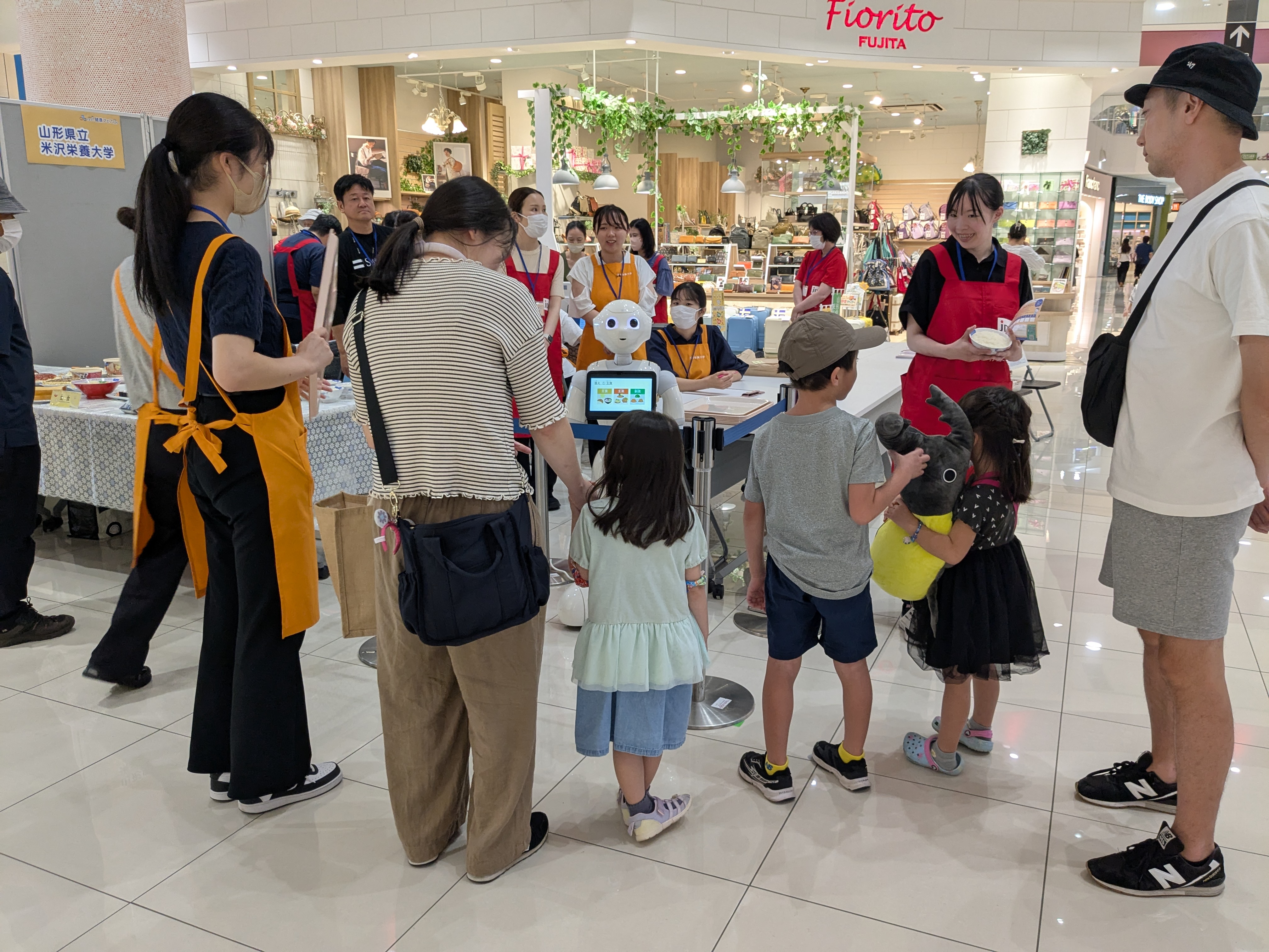 令和7年9月13日(土)と14日(日)の2日間にわたってイオンモール天童で開催された「やまがた健康フェア2025」に、本学の学生がソフトバンクの人型ロボットPepperと一緒に参加しました!
